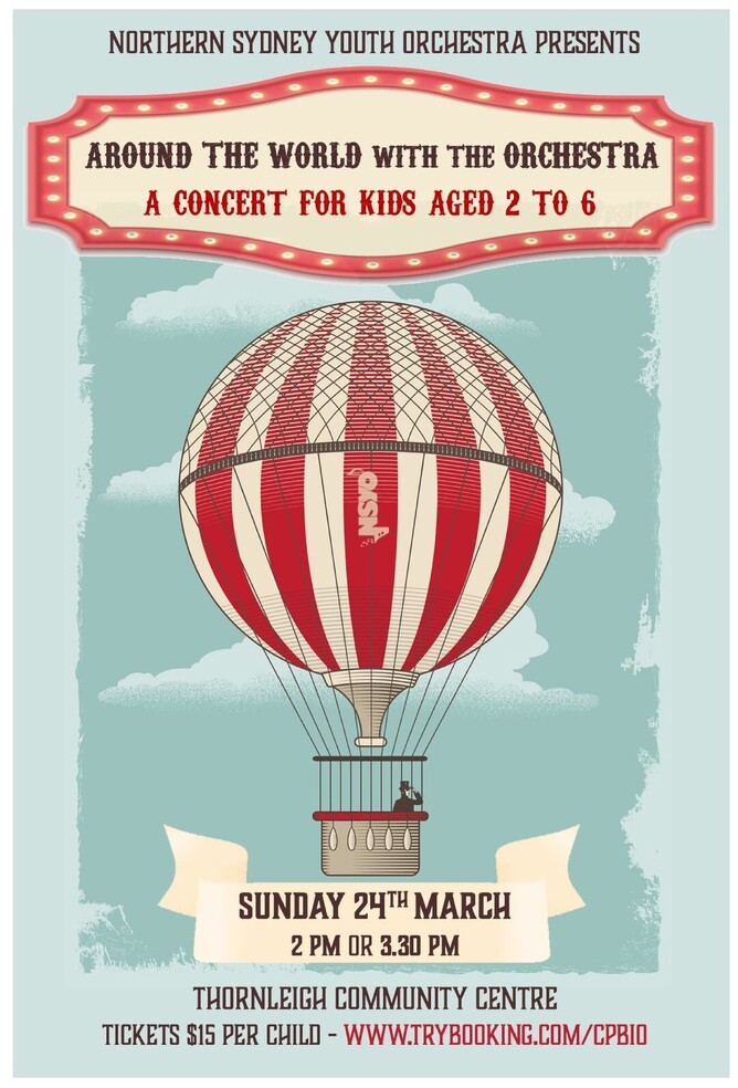 Join us for a 45 minute concert 'Around the World With The Orchestra'. There are two sessions to choose from, 2 pm or 3.30 pm, at Thornleigh Community Centre. Following the performance, children are invited to chat with our musicians and experience individual instruments being demonstrated.